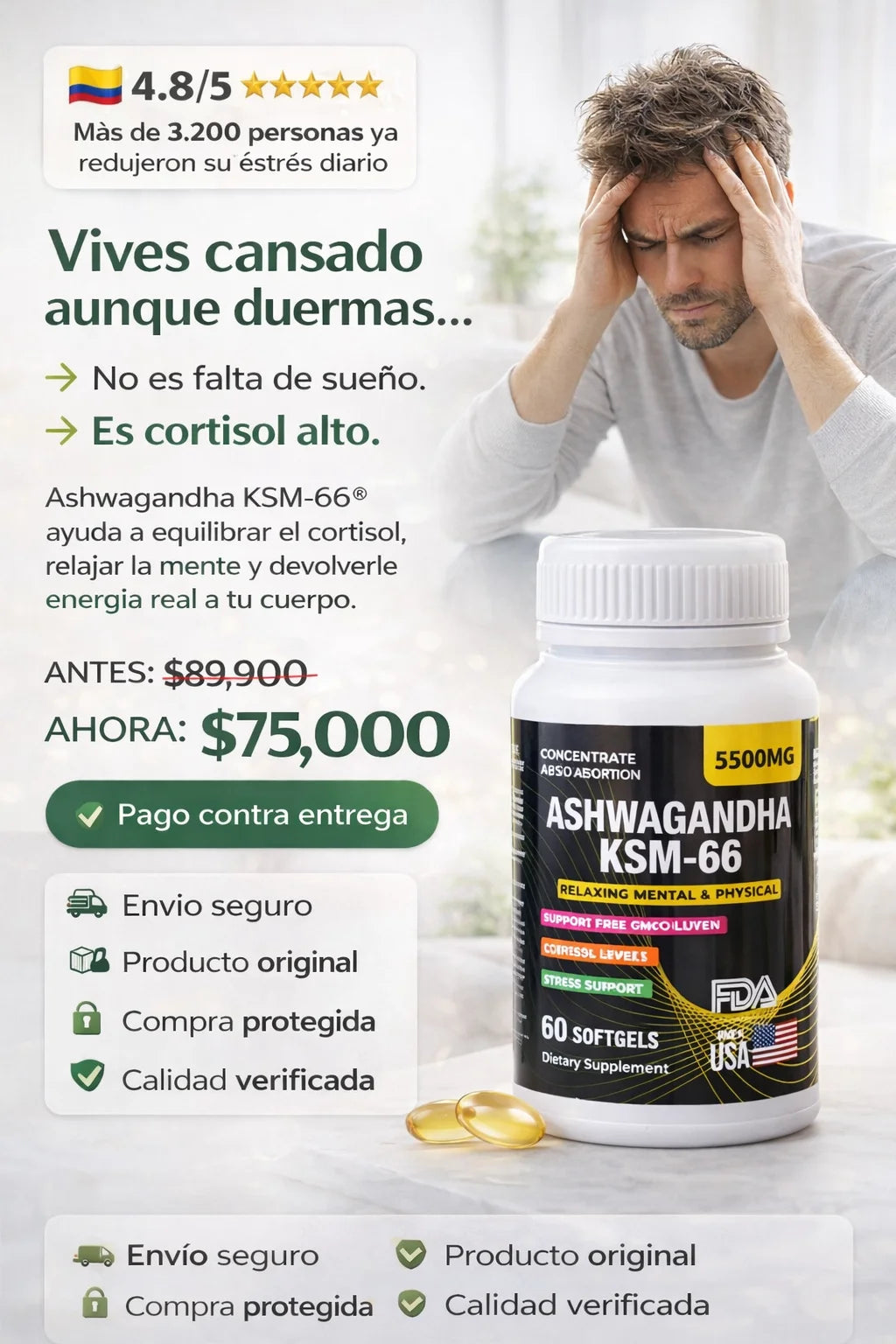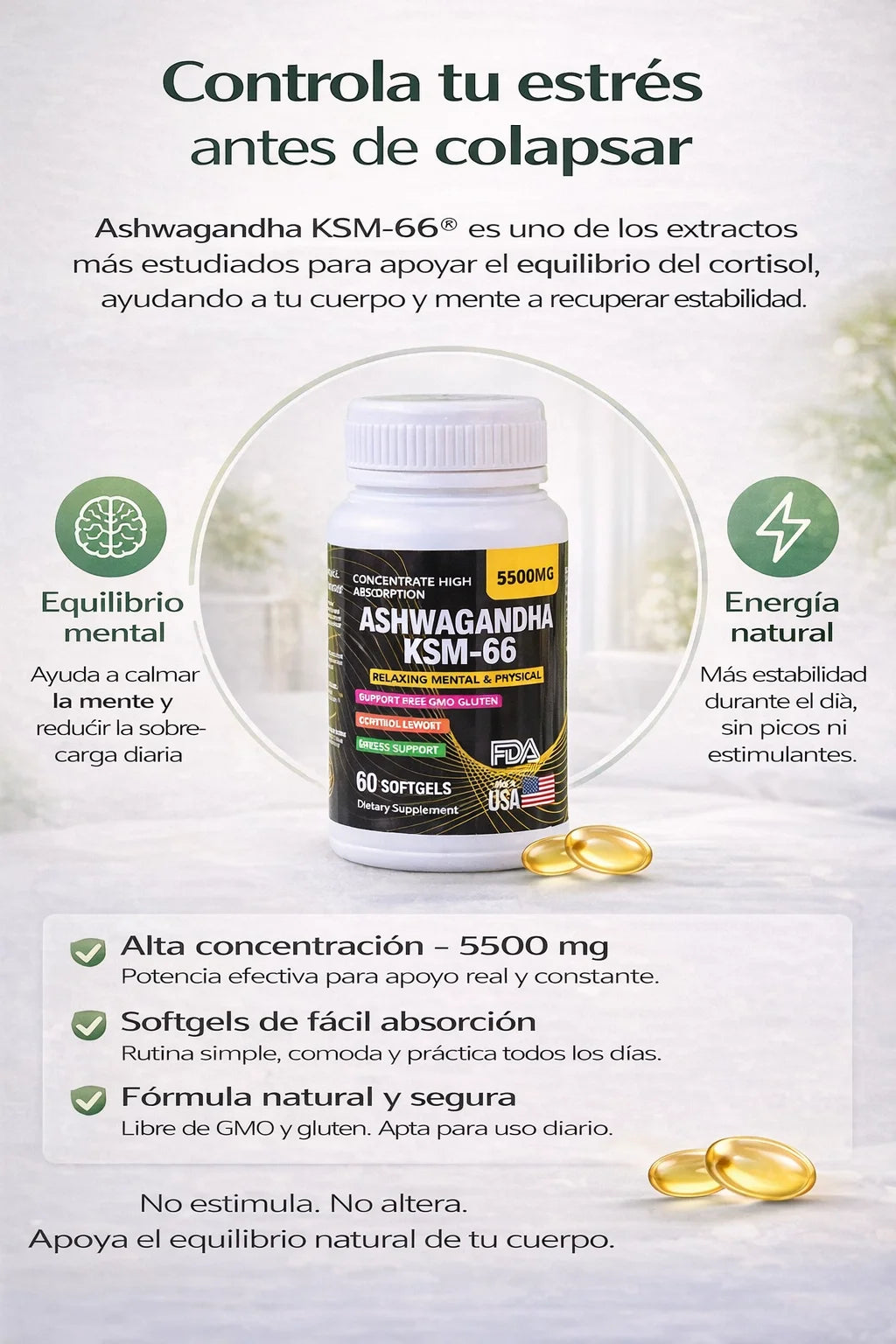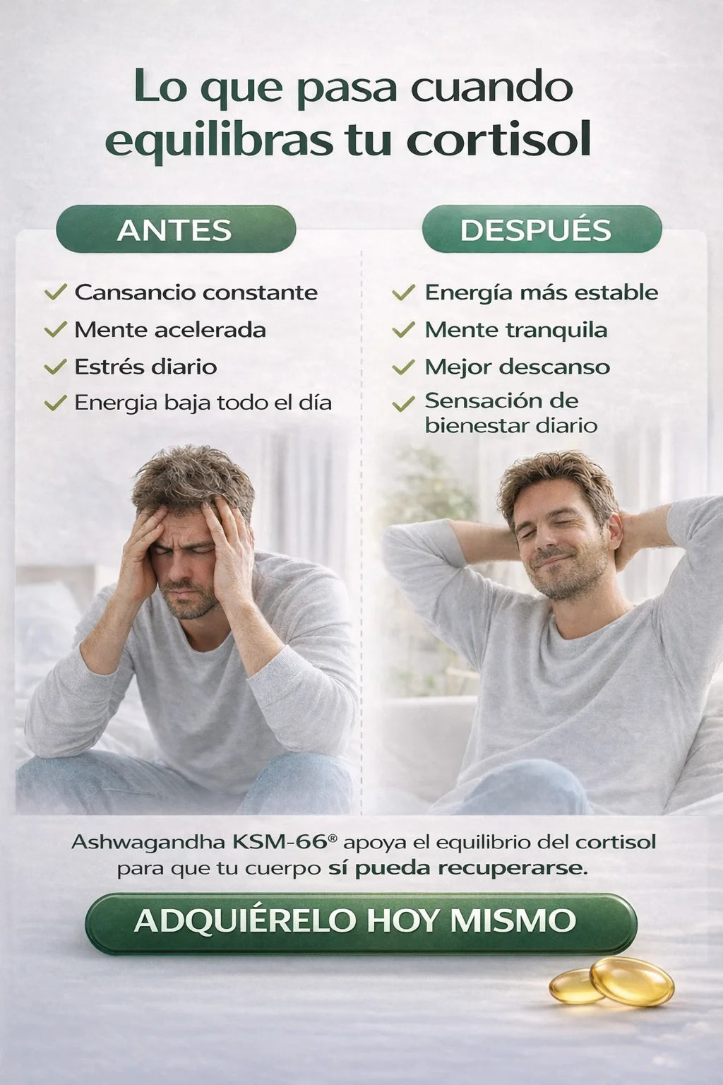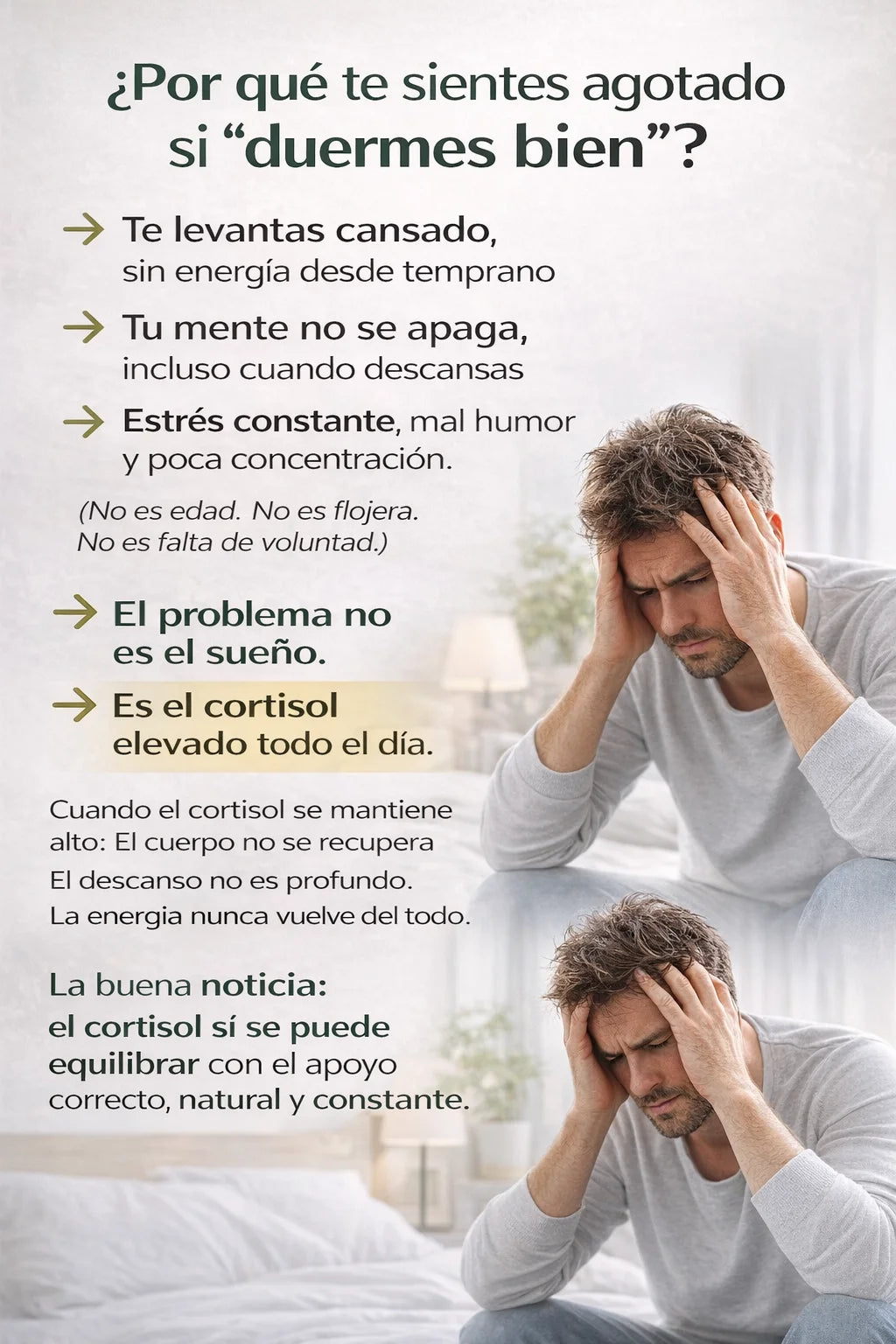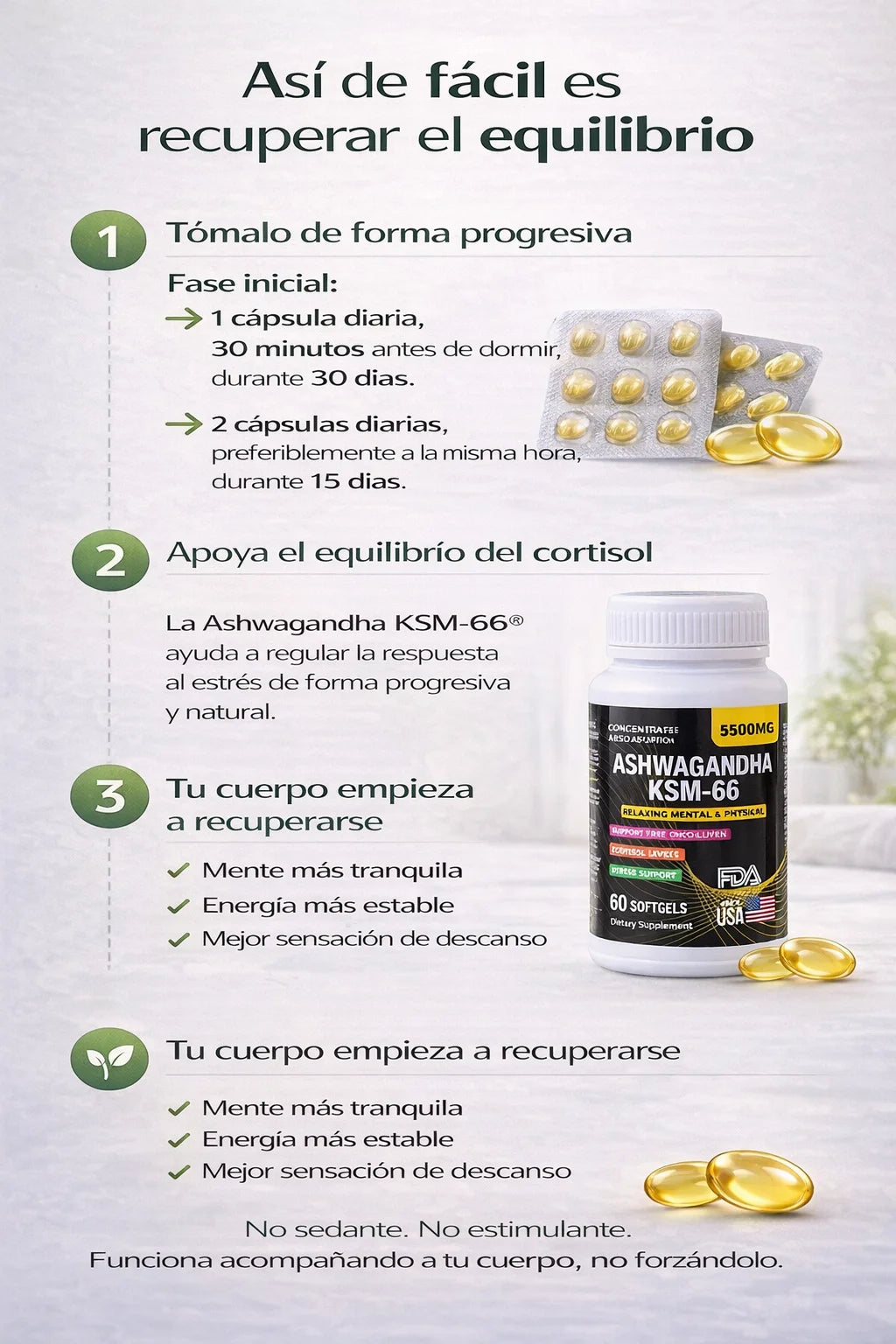 Ayuda a equilibrar el cortisol, por eso mejora el descanso y la energía de forma natural.